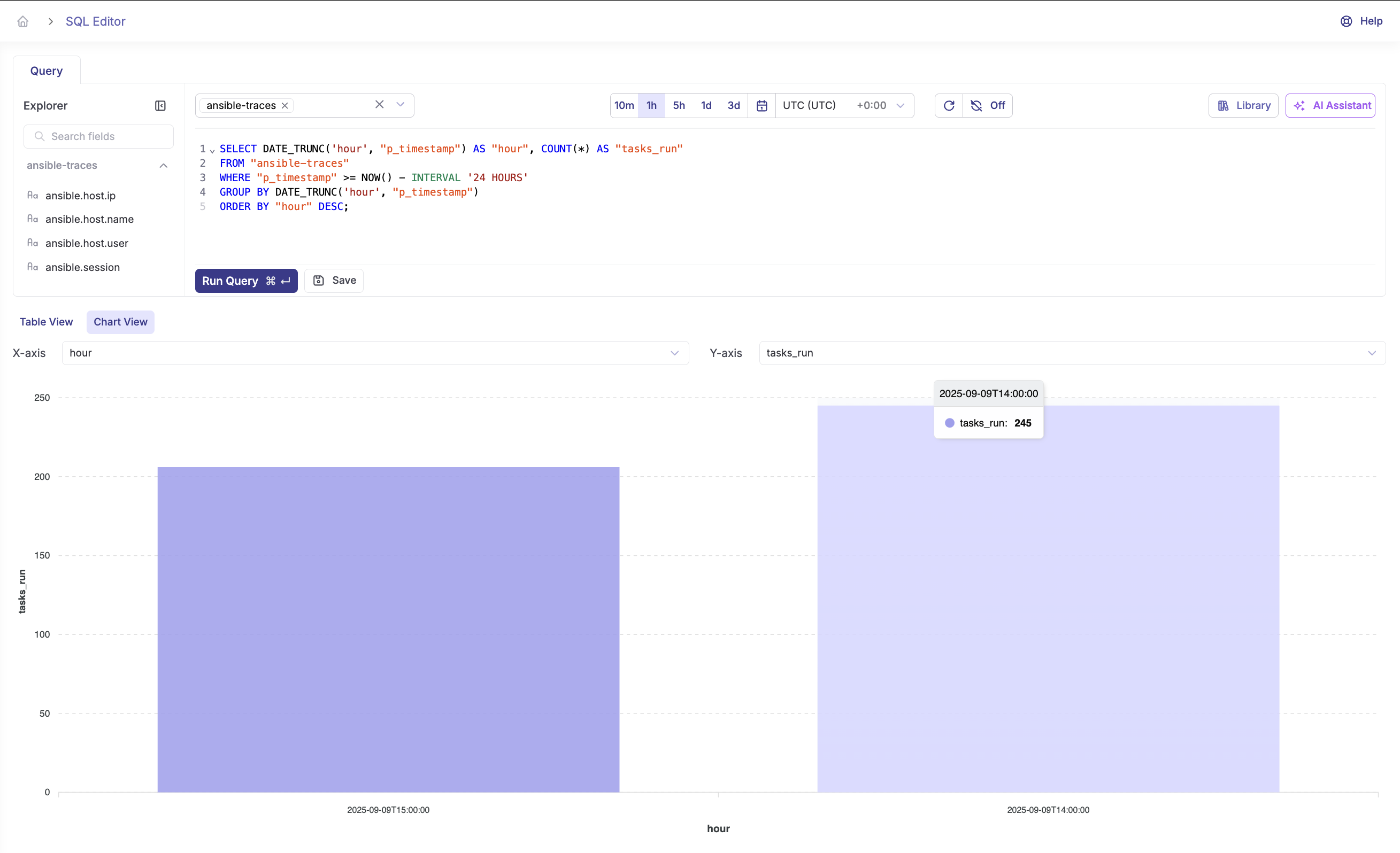 ansiblelogsoransibletraces) and set the time range you care about. - Click the