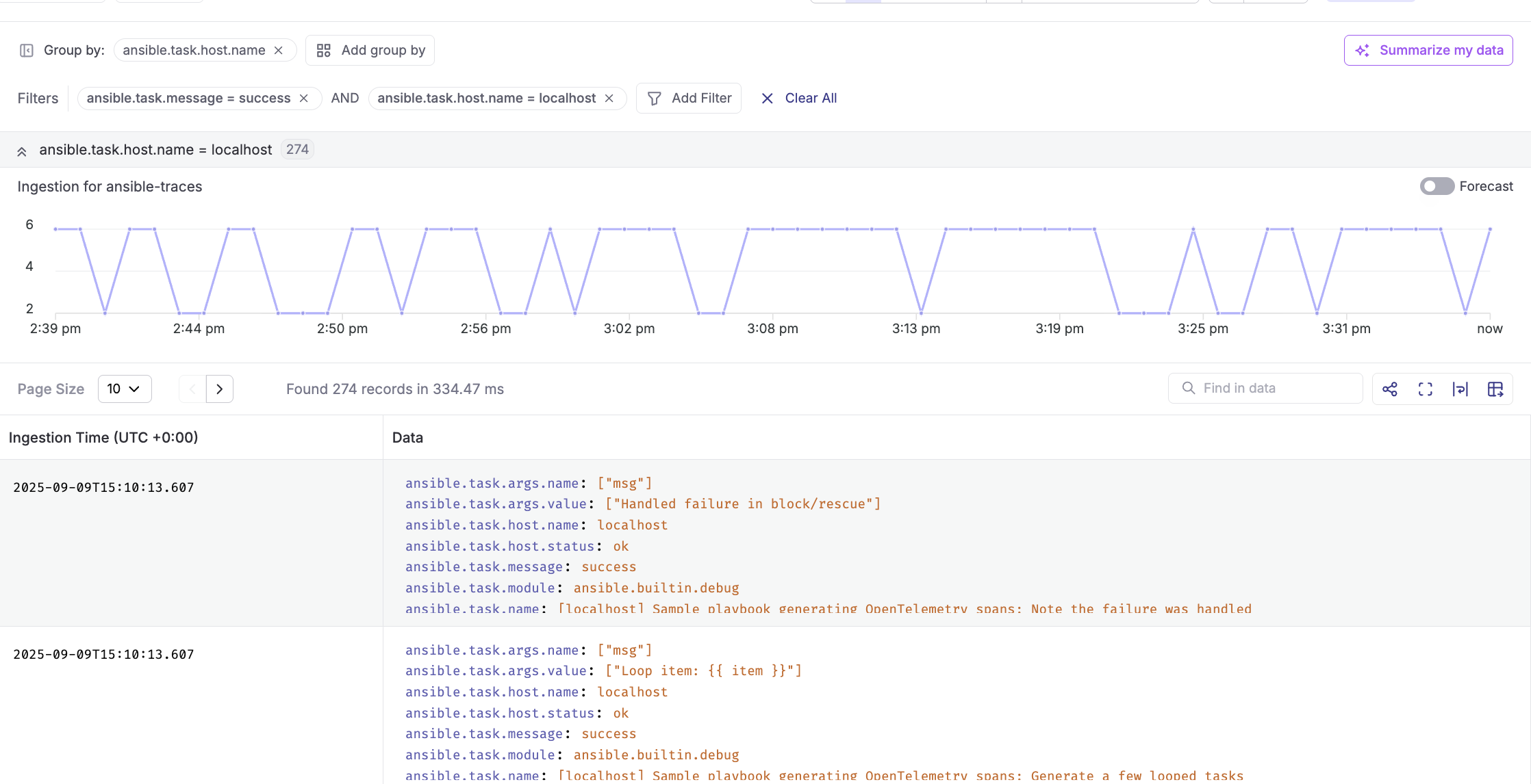 OTEL_SERVICE_NAME(e.g.,ansible-playbook-demo)PARSEABLE_ENDPOINT(e.g.,http://localhost:8000/api/v1/ingest)PARSEABLE_BASIC_AUTH_B64(base64 ofusername:password)- Streams: