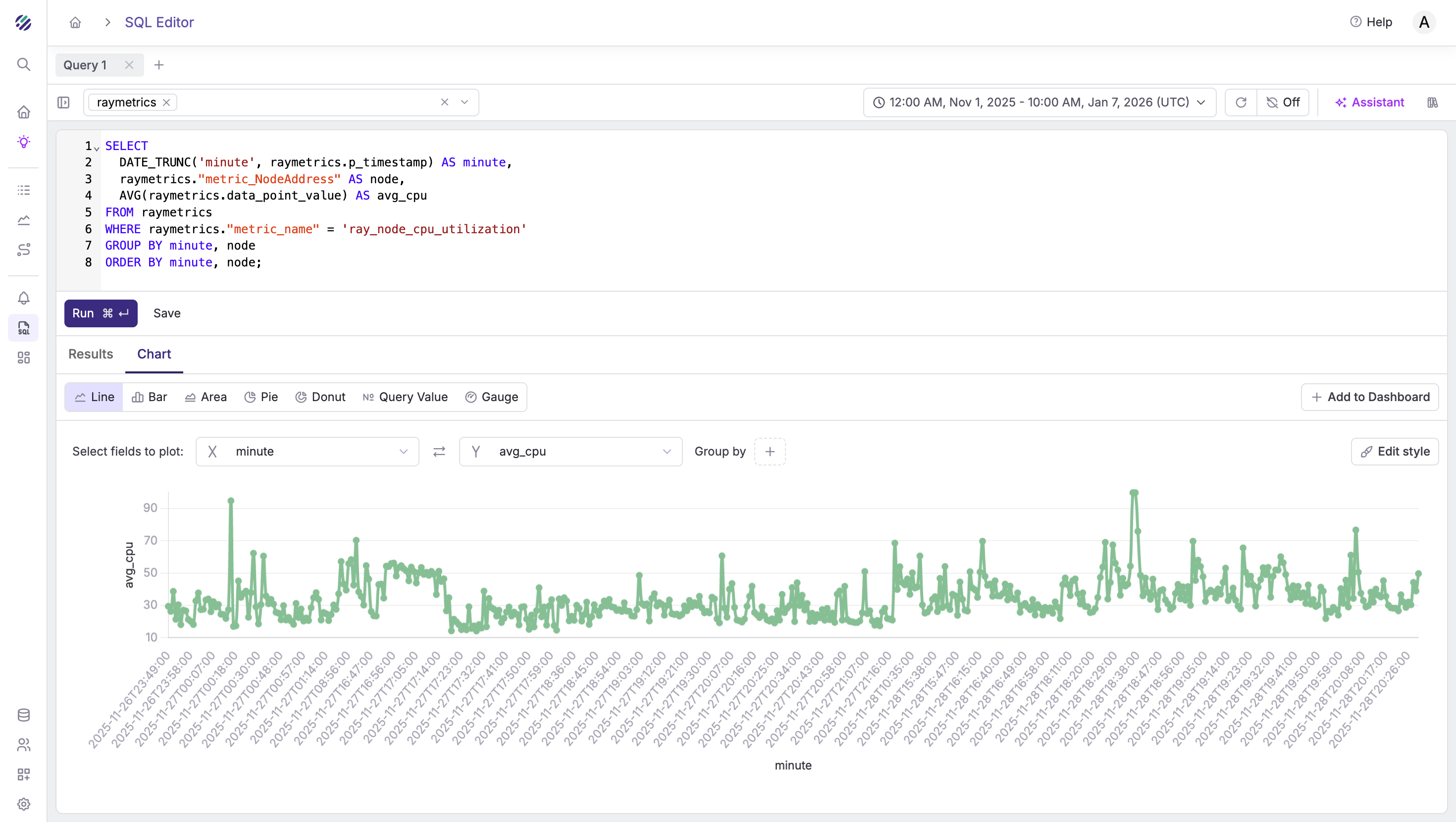 WHERE raymetrics."metric_name" = 'ray_node_cpu_utilization'