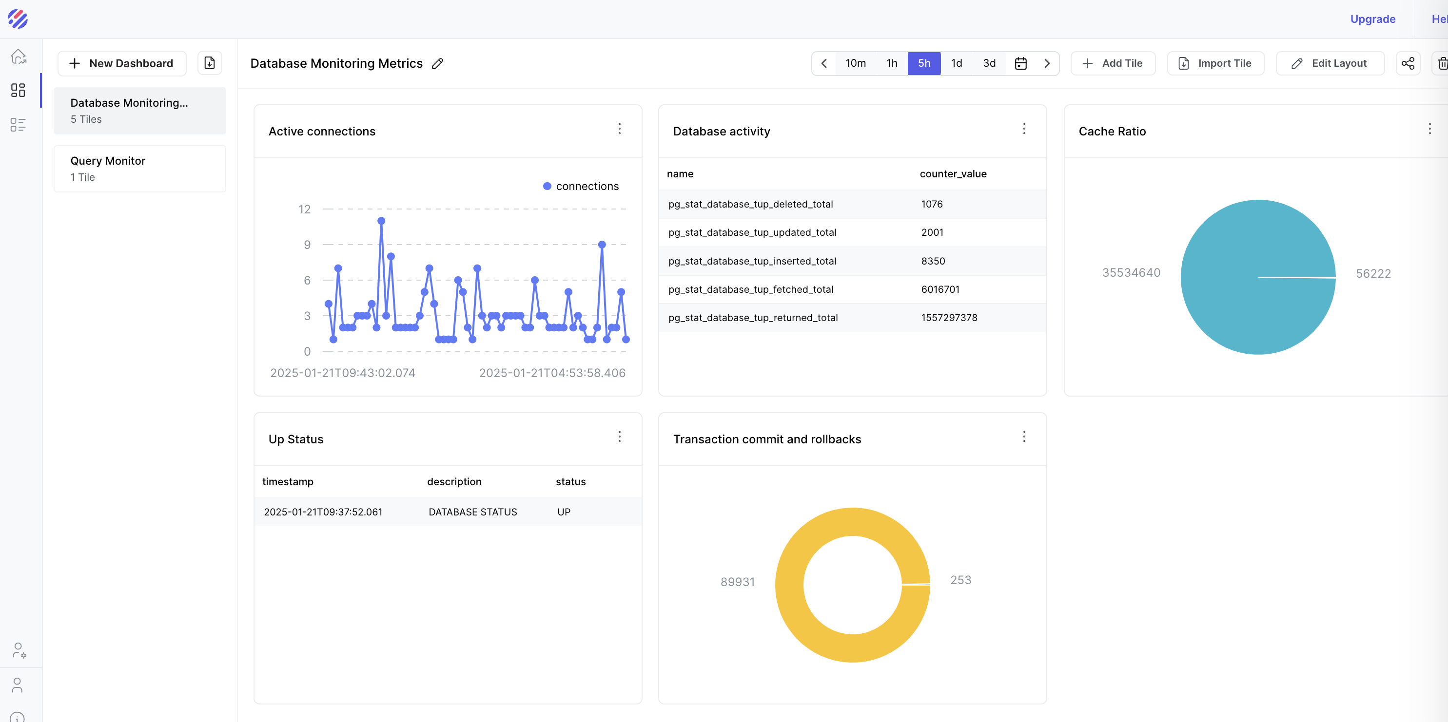 You have successfully pulled database monitoring metrics from the PostgreSQL, shipped it to the Parseable, and created a dashboard. From here you can keep enhancing your dashboard with more valuable metrics as per your need.