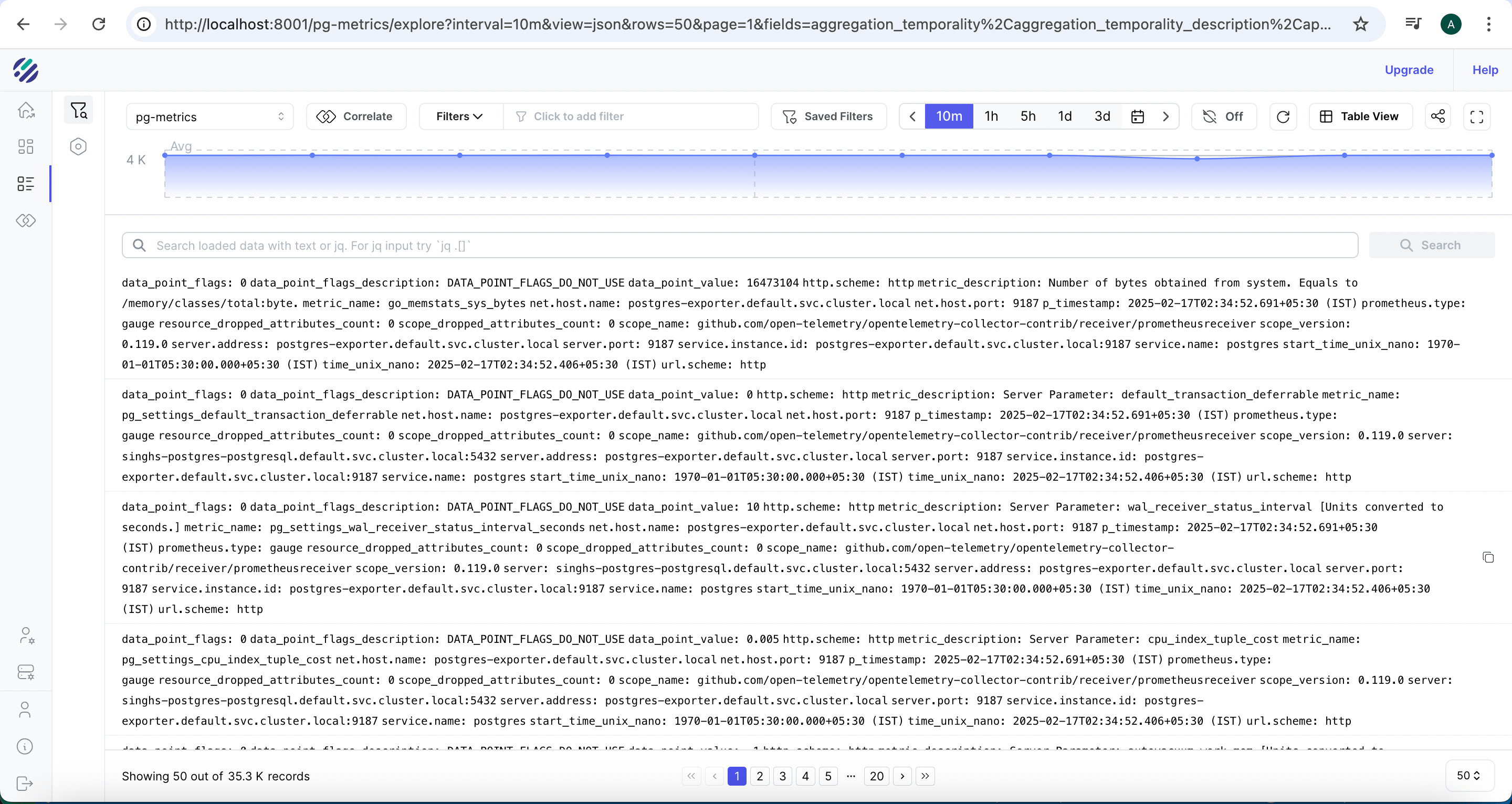 At this point we have logs in Parseable. Now let’s configure PostgreSQL metrics in Parseable.